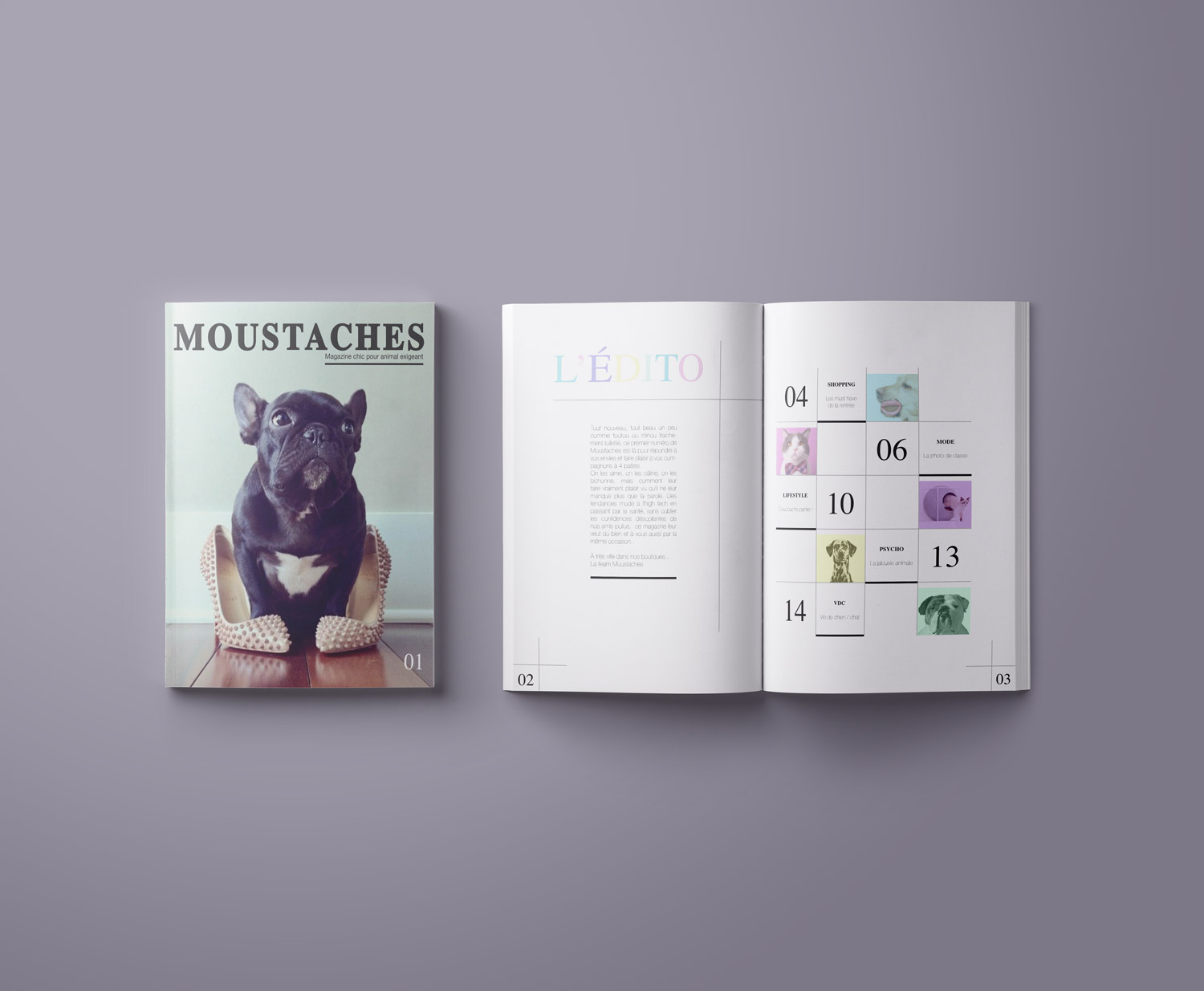 Allier shopping plaisir et respect des animaux est le crédo de Moustaches. Pour se démarquer de ses concurrents. Il souhaite lancer un magazine trimestriel au ton décalé et en accord avec son identité.